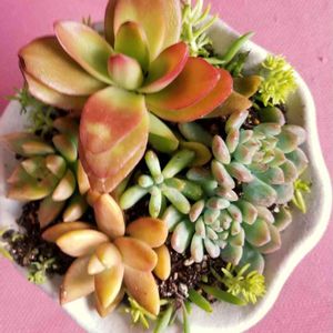 寄せ植えしてみました🎵💚 火祭り、 レモンボール、 乙女心 ルビーネックレス、 オウレイ、秀麗 淡いピンクのふちが可愛い 2個の名無しさん、