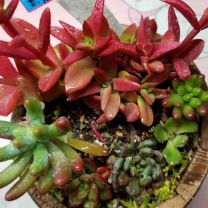 寄せ植えしてみました🎵💚 以前木箱に寄せ植えしましたが 浅く土がぼろぼろして、綺麗ではないので鉢を購入してやり直ししました。 エレガンス 恋心 月兎耳 赤鬼城 虹の玉 オウレイ レデイシア 秀麗 その他