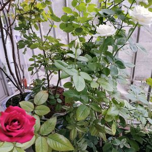 こんにちは〜☀☀☀ 夏❗ 暑い中、今日の津波が心配です😱 薔薇が頑張って咲いてるベランダ✨ でも暑さですぐに花びらがクシュッとなっちゃいますネ😢💦