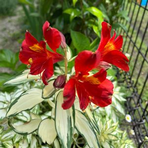 梅雨の合間の晴れ日和☺️ 斑入りのアルストロメリアとスカビオサ