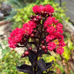 8月になって初です! 連日の熱波にMy Gardenは全滅寸前〜😱😓😱😭 ここ何日か土砂降りだったり、湿度高すぎてサウナ⁈と思う位! でもでも、今年もやっと咲いてくれました😍 黒葉に赤の百日紅! 好みなんです♪