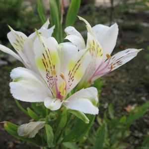 庭に咲いてるアルストロメリア。 ホワイキーズという品種だそうです。 嫁さんが育ててくれていて、 私は鑑賞するだけ・・・\(^o^)/