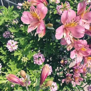 アルストロメリア と ニオイテンジクアオイ (ローズゼラニウム) ピンクとピンク