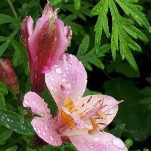 おはようございます😃 アルストロメリア💗 雨に濡れた姿も綺麗✨