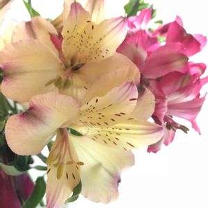 おはようございます❄️ 北海道は今、雪まつりの季節です。 寒い雪ですが、うんと冷えると雪の結晶が陽の光で、キラキラと光ってキレイです。 先日の黄色のアルストロメリアに引き続き、たくさんの色があるアルストロメリア! 混色のものもあります🌸 1本でいつくもの花がついているので、何本かで華やかなブーケになります。