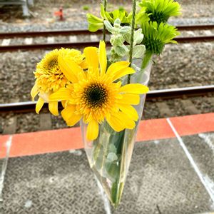 ひぃばぁばのお見舞いのために孫娘が選んだブーケ💐💕😊 救急病棟では生花はNGでした😥 花粉・香り・アレルギー対策との事。 よく考えるとそうですよね🤔😵 気持ちは伝わったのでばぁば(私)が持ち帰りました😅