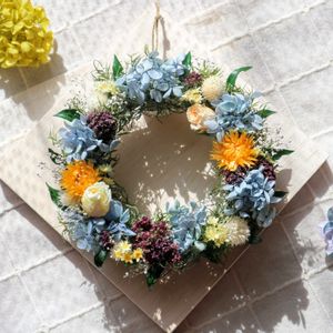 紫陽花やオレガノのドライフラワーを使った夏らしいリースを作りました💙 土台にはスパニッシュモスを使い、ドライフラワーはグルーガンで止めています。 細々とした作業は思っていた以上に時間がかかりました😆