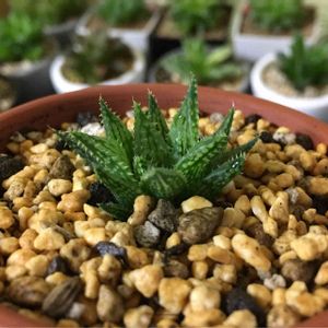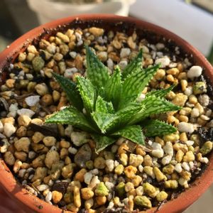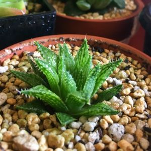 ハオルチア 交配種 暗黒竜 軟葉と硬葉の中間っぽい 成長して綺麗になるのが楽しみ 窓も見えるようになるはず🤗