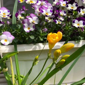 フリージアが一つ咲いていました😊 もう何年も前にみーちゃんが植えたフリージアが開花してくれて嬉しい😊 気温低めだけど、お天気は良いので今日かなり開くかも🤔 土日はノーマスクさんがウロウロするから、あまり庭に出ないようにしてて、切り花にしてお届けしたい人がいたんだけど悩む〜🤔