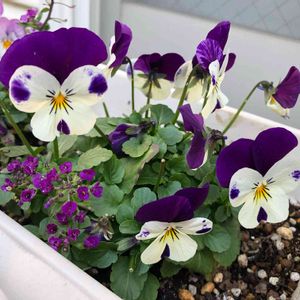 今日のビオラさん、アリッサムとの寄植え 最強のかわいさ💘 予想外に風もあって寒いです。