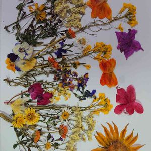 本日のお花✨ 菜の花✨ 横にして見てくださいませ😌 以前投稿した花友さんの押し花に感動して、自分でもやってみたくて☺️ これは、キッチンペーパーと段ボールに挟んでレンジでチンして作ったものです✨ チン✨する、時間が難しく何度も繰り返して出来たのがこのお花さんたち😊 ちょっと、遊び心で並べてみました☺️ 太陽(、、、の、つもり😅)は、ガザニア、蝶々(、、、に、見えますか?😆)は、フリージアをくっつけたものです🎵 菜の花✨は、少しですが😆☺️ けっこう、楽しく制作出来ました😊