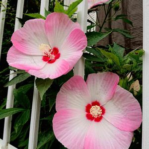 木槿(ムクゲ) 梅雨の時期に咲き終わってしまったと思ったら、蕾が増えて2回咲き!でも、また雨続き☔️ 今年のムクゲさんは間が悪いぞ!(笑)😅 雨の中、庭の奥で、ひっそり咲いているのも風情があっていいか〜😊 何年目か分からないけど、もう私の背丈を超えてます😅