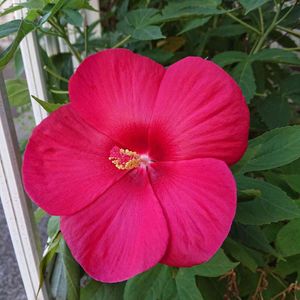 おはようございます☀️.°今日も暑くなりそうですね💦遅ればせながらゆっくり育っていた赤のタイタンビカスさんが咲きました✿*:・゚赤は蕾がなかなか出来ません( ´•_•。)💧
