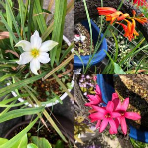 左横の白いお花は何という名前でしょうか? 同じプランターから、夏にはオレンジ色のヒメヒオウギズイセン、春にはピンクのイキシアが咲きました。どちらもGSで名前をおしえてもらいました。ちなみに、この白いお花は去年の9月頃にも咲きました。ナゾ多きみーちゃんの庭です😅