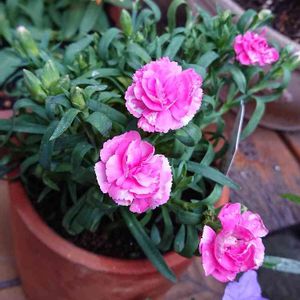 母の日に娘からもらったカーネーション❁⃘*.゚しばらく部屋に飾っておいたら元気がなくなって来たので急いで鉢植えに💦みるみる蘇り開花しました!一安心(´,,-ㅿ-,,`)フゥ-