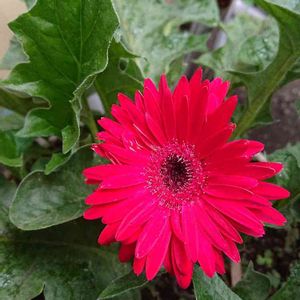 何年か前に植えたガーベラさん❁⃘❀春先に咲いたので、またしばらくは見るのもお預けだな〜なんて思っていた矢先、こんな時期にまた一輪咲いてくれました✨葉っぱもモリモリで元気だな〜😀