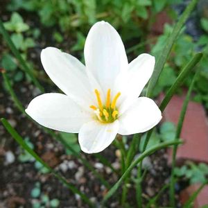 長年ほぼ放置になってる小庭の花壇から、たった一輪だけゼフィランサス!?が咲いていました✿*:・゚真っ白で透き通ってる感じがして綺麗です✨以前何を植えたかわからない球根が蘇ったんでしょうね(笑)