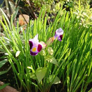 みなさん!お疲れ様でした😌 ムスカリの葉の中に、何故かトレニアが…👀ご近所さんのトレニアの種が飛んできて咲いてくれたようです(笑)