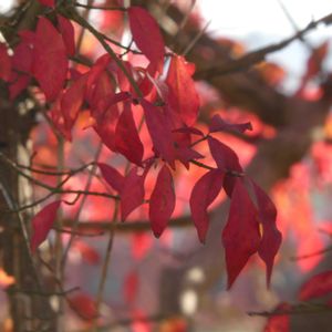 錦木🌳 ニシキギ 御用水街園散歩道 名の由来どおり、美しく華やかな葉色です。珊瑚色の実もかわいい🔴✨