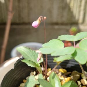 株分けしといたネジバナのポリポットにオダマキとスミレが生えて 3/30 何スミレか分からないけど( ˙꒳˙ )??? ヒメスミレの桃色バージョン? 先日、投稿したシャクヤク鉢のに似てるっ なぜ此処にWhy?…