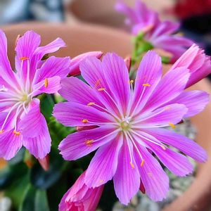 屋外:レウィシア&リトープス 旦那さんの免許更新のために少し遠出。待ち時間に普段は行けないHCで見付けました🌸 リトープスはこれから夏だし…と購入を迷っていたら2歳の娘に倒されてしまい…購入💦この後、植替するべき?そのまま?お詳しい方、教えてください🙇💦 レウィシアはGSで素敵と思っており、少々傷んでいましたが購入しました✨素焼鉢に植替済。根鉢が湿っており、根腐れ心配です…