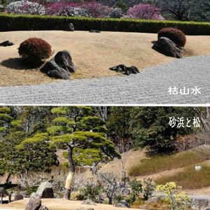 日本庭園 枯山水と梅 砂浜と松は、天橋立の砂浜をイメージして造られた庭
