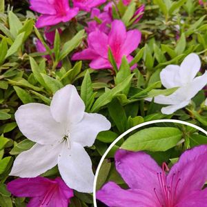 マンションの春庭の散策 part3 No2【ツツジ】 ピンクと白の花が、同じ木から 咲いている様に見えます 花の大きさは 手を握った位でしょうか パット晴れやかです