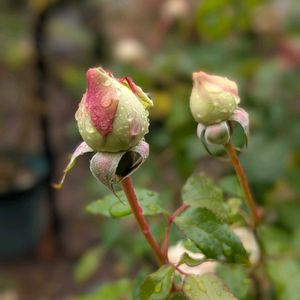 バラのボレロとパトラッシュ。 今年、どちらもスリップスの大発生で災難でした。ボレロは、今までなった事ないうどん粉になり😣💦 気温も下がってきたので、もう少し膨らんだらお部屋で楽しみます🍀