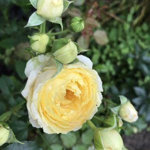 パトラッシュの2週間前の蕾は、満開前に散ってしまいました🥲 これは今頑張ってるパトラッシュ🐕️💛 コロコロ愛嬌があるバラだけど、今は優しげでとても素敵な雰囲気です☺️🍀🍀