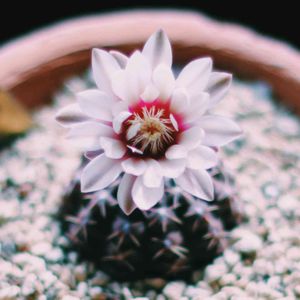 ギムノカリキウム・瑞昌玉 お休みの日に咲いてくれた😃✌️ 透明感のある白色に付け根が赤、クリーム色の雄しべに白い雌しべ上品な色味です😍