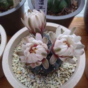 サボテン ギムノカリキウム白、薄桃系 まだまだ咲き足りないみたいです。😆 瑞昌玉 麗蛇丸 牡丹玉