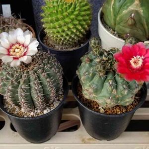 お天気よくて開花しました✨ 一斉に全開とはいかないけど、 頑張って咲いてくれてありがとうネ🌵