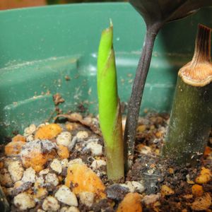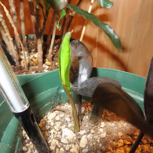 今年もザミオクルカス レイヴンの花が咲きました。下にもうひとつあるようです。 軽い培養土に植えたら根が暴れまくってしまったので今年は重めの土に戻そうと思います。
