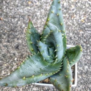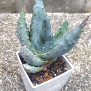 アロエ鬼切丸。 マルロシーじゃなく、クロウジアナ。 だって、刺の根本が白いから。 マルロシーもおむかかえしたい所だけど、こんな大きくなられるとね😅 まだ、マルロシーは丸まってくれるけど、手前のフェロックスはのびのびだからね💦 来年は、もう簡易温室をでて、裏手で普通に冬越しかな?