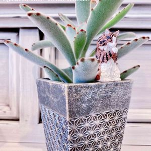 みらいさんとmakimeyさんの🏷毎月13と14日は葉挿しの日に参加します。 春先に顔を出したパールフォンニュルンベルグ。 全然成長してないと思っていましたが3倍くらいにはなっていました。 でもねー、左は発根してない‥ 水不足かな? 油断したら枯れそう アドロミスクスのトリギナスは冬にポロポロと落ちて駄目かと思ったけど、落ちたままばら撒いておいたら発芽していました~ 昨日初めて会ったニャンコちゃん! 近寄ったらこのポーズ(笑) でも逃げない‥ 一生懸命、イイヒトかワルイヒトか困った顔をして考えている様子 可哀想なので、またね!と去りました。 また会いたいなぁ~