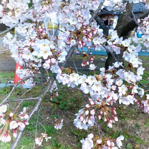 職場の野っ原駐車場🌸 この辺りは、今汚染土壌の掘り起こしと運び出しを行ってます。 私の自宅も今年だそうです。 汚染土壌の運び出しはありがたいけど、除染で土を削られ、山砂を盛られ、水捌けが悪くなり… やっとこさ落ち着いた庭が、また数年前のような悲惨な状況になるのか😭