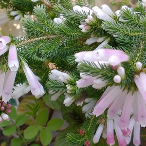 エリカ ホワイトデライトお迎えしました🤍 白い花の先端がほんのりピンクです💗 秋が深まると出てきますね🎵 松の葉のようですが、ツツジ科なんですね😊