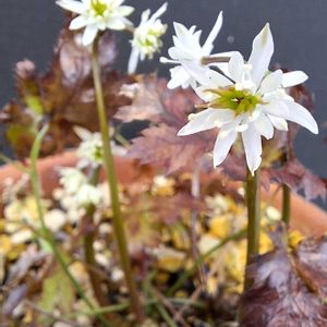 セリバオウレン 早春の山野草のトップバッターの1人です。 緑の無い落ち葉の上にピョコンと花を咲かせています。