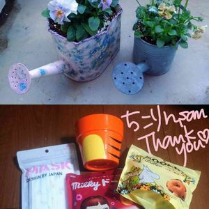 昨日はステキ便がたくさん届きました😍🎁 上 タイヨウちゃんからアロマティカスとライムジンガー🌱💖頑張ってお世話します〜😆🎵 中 kaawaaさんからプレ企画のお礼にとおやつや小物🥰🎁ミッフィー大好きなので嬉し〜い😆🎵 下 ねぇ〜さんさんからプレ企画のお礼にと、リメ缶や多肉さんにおやつ、飲み物🥰🎁盛りだくさんでびっくり😍💖 皆様ステキな贈り物ありがとうございました😊🌼大切に使わせてもらいますね😘💕
