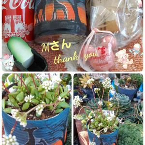 今日は天気の良い休日💓 午前中~毛染めとカット💇に行き🎵 午後から夕方まで庭仕事~💓 そんな中💓 Mさんから📦~🎵 素敵なリメ🥫もらったので 早速~大好きな紅稚児を\(◡̈)/💗 お寿司の形の子にも💓 ちまちましたら可愛い~と 思ってたのに色々やってたら ちまちまするの忘れてた🤭 Mさん💓 有り難う~\(◦˙︶˙◦)/ お寿司には💓また ちまちましたらアップするね🎵 お庭に💓また花壇も作ったょ🤭 近所の友達が庭にいる私を見つけて 遊びに来ました🎵 増えた多肉ちゃんをわけてあげたら 喜んでたわっ(•‾̑⌣‾̑•)♡ 夕飯~どぅしょ~かなぁ~💦 休みの日は作る気にならないよ~💦 ドウシヨウ・・・( ;-ω・)aポリポリ