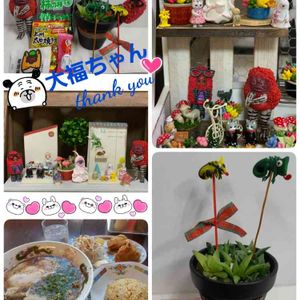 今日は、お義母の転院で 退院手続き、入院手続きをして 療養の今ままでの病院へ 帰ってきてます😌 手続きも終わり帰ろぅとしたら 「なんで帰るん」と言うので 昼御飯終わるまで帰れず💦 ご飯🍴が来るまで 昨日~トワさんから届いた 素敵便✨🎁✨をアップ💗 カッコいいリメ鉢と可愛い🍓イチゴの リメ鉢💓 お洒落なマフラー🧣に あったかレッグウォーマー💓 コロコロ入れるケースは トールペイントで可愛らしい花が🌻 コロコロはネコ🐱ちゃんいるから 毎日の必需品💓 可愛いケースに入れて置けるので 便利だわ💓 美味しい😋そうなカニスープ 心温まる✨🎁✨プレゼントを いつも沢山有り難う~💓 お庭にある小人の祭りが🍃 とても可愛らしい姿になってて 今朝、ほーちゃんのハオさん キューピーと撮影したょ🤳 昼間は暖かいから、どの子も 可愛らしい姿🍃 癒されちゃう~💓 お義母さん、ご飯食べたら 帰って少しゆっくりしょ~っと🎵