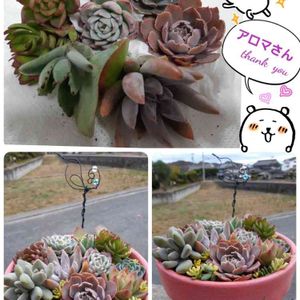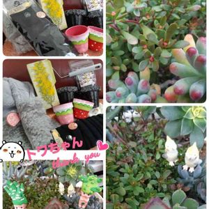 今日は朝から粗大ゴミを 捨てに行くのを 友達が手伝ってくれて 捨てに行ったり、 不織布を買いにホームセンターへ行ったり 仕事着を買いに行ったりと 忙しい1日だった😆 家に帰ってポストを📪開けたら 💓アロマさんから💓贈り物が😍 素敵な苗が入ってました🍃 トリマネンシス ピンクルビー シャビアナ チワワエンシス アガボイデス ホワイトゴースト 天狗の舞 ツキトジ デザートローズ 早速、作ったリメ鉢に 寄せ植えしました💗 豪華な苗を沢山🍃 (☆゚∀゚)ノthank you♪ 今日の疲れが ぶっ飛びました🍃💗 (ღ*ˇᴗ.ˇ*)。o♡ウットリ♡