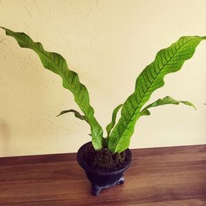 部屋が日当たり余り日当たりが良くないので、日陰に強い植物を調べたら、シダ系が良いとの事でした。 写真を見で良いなと感じた、クロコダイルファーンを買おうと、いざ出発! ホームセンターを10店舗以上梯子しましたが、全然見つからず💦 諦めかけて値段は高くなるけどネット通販かなと思っていたら、ホームセンタームサシ名取店で遂に発見✨何か凄い達成感でした😊ヘトヘトになりましたが😅 思った通り鰐皮のような葉の格好良さに惚れ惚れです🐊