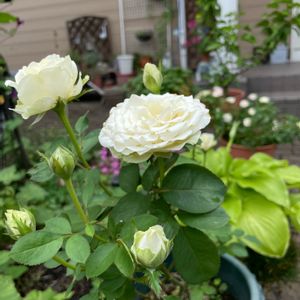 白薔薇とリーガスベゴニア🤍似ている感じがします✿゚❀.(*´▽`*)淡い色で綺麗です。ミニ薔薇の正確な品種を検索中です🧐 どちらも、なが〜く咲いてくれてます😍 ありがとう(՞˶・֊・˶՞)🤍