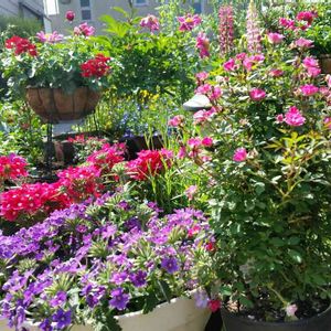 家の正面を裏側から撮ってみました。(*´-`)❤ミニチュアバラと赤のアイビーゼラニウムがお気に入りです☺