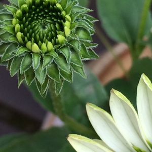 お尋ねがあったので…💠 エキナセア フレグラントエンジェル💠 咲き始めの蕊はグリーン💚 咲き進むと もりもりして イエローがかってきます💛 エキナセアにしては 珍しく 香りもほのかにあるんですよ~( *´艸)❣️