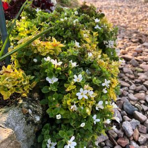 こんばんは🌇 今日のお庭です‼️ 花壇の中の斑入りバコパは去年、挿し木をしてて夏・冬越しして元気に咲いてくれてます❣️