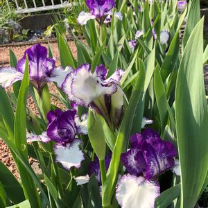 こんにちは 今年もジャーマンアイリスが見頃となりました❣️ 去年、植え替えて場所を変えたけど、ちゃんと咲いてくれました🤗 でも、茎が伸びずにおチビちゃんです😅