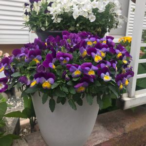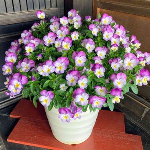 こんにちは🌧 雨が降りそうな午後です。 昨年11月9日植えて、すくすくと成長し、今年の4月に鉢増ししました。 花農家👩🌾さんで何故か半額になっていた、「プレミアムビオラDJ」 ビオラ達はそろそろお暇をあげようかと思ってるのですが、まだまだ元気💪🏻💪🏻です😀 一生懸命咲いてくれて、ありがとう🙃🙃