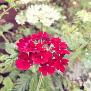 バーベナ クラレット♥️ レイズドベットの端っこ組(*´▽`*)❀ 次々に花を上げてくれる 宿根草で寒い時も地上部に葉っぱは残ってて 暑さ寒さに強いみたい୧(˃◡˂)୨୧(˃◡˂)୨ 実物はこんなに鮮やかな赤ではなくて くすんだ赤紫色なんだけど 本当の色が表せないのはもどかしい でも、これはこれで可愛いから許す😍